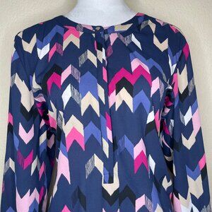 JM Collection Women's Navy Blue Pink Chevron Print Pleated 3/4 Sleeve Blouse XL