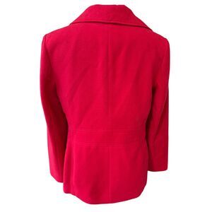 Super nice red pea coat by JM Collection. Lined, button front, pockets, long sleeves. Classic !