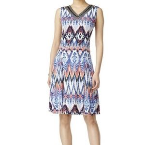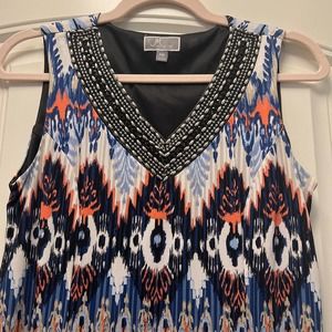 JM Collection Women's Petite Beaded Embroidered Sleeveless Casual Dress Size PM