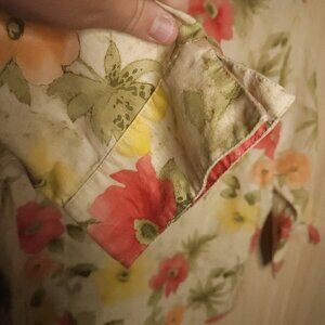 Women’s JM Collection petite floral linen button down shirt. Good condition. Measurements are: 18” sleeve, 23 ½” from shoulder to hem, 12 ½” from armpit to hem, and 21” from armpit to armpit.
