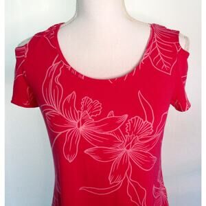 JM Collection Women's Petite Pink Floral Peek A Boo Shoulder T-shirt Size SP