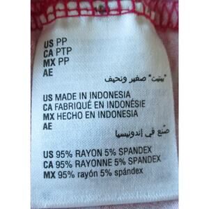 The material is rayon & spandex and it is machine wash. Made in Indonesia.