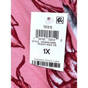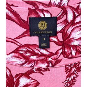 JM Collection Womens Pink Floral 3/4 Sleeve Top 1X Rayon Blend Peach Kiss