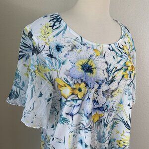 JM Collection Womens Plus 2X Floral Short Flutter Sleeve Blouse Tunic Top Shirt