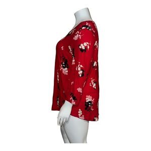 JM Collection Women's Plus Size Flowing Foliage Jacquard Top in Real R Combo (Red) NWT