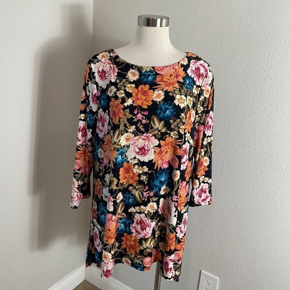 JM Collection Womens Plus XXL Floral Tunic Top 3/4 Sleeve Multicolor Stretch