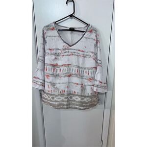 JM Collection Womens Printed Bell Sleeve Top Stone Combo Beige Plus Size 1X NWT