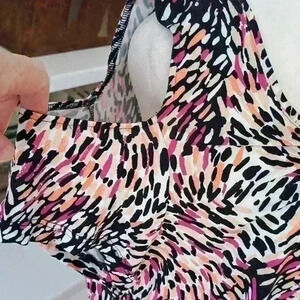 Dynamic brush strokes of color energize this top from JM Collection. Cold-shoulder cutouts add fun.