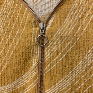 JM Collection Women’s Printed Saffron Gold Zip Front Top Size 1X