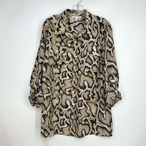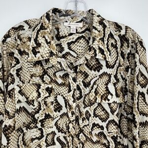 JM Collection Womens Size 16 Button Front Blouse Beige Black Snake Animal Print