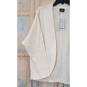 JM Collection Women's Size Medium White Long Sleeve Cardigan Sweater