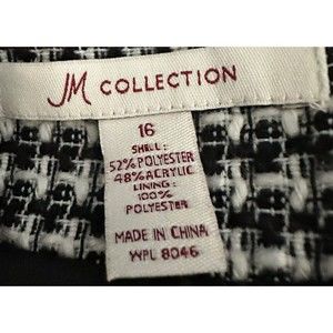 JM Collection Womens Suit Jacket Size 16 white Black Lined 3 Button Close Blazer