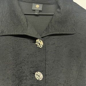 JM Collection Womens Textured Bell Sleeve Jacket Size L Black Career Workwear