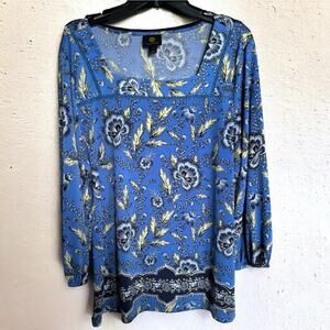 JM Collection Womens Top Sz XL Watery Blue Wildflower Way NEW Floral