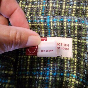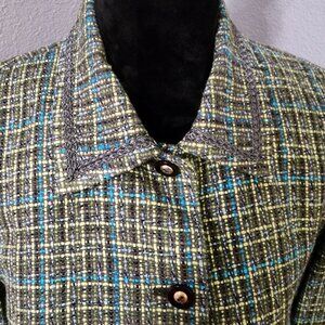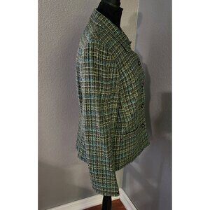 JM Collection Womens Tweed Button-Up Blazer Size 12 Green Blue Pockets Lined