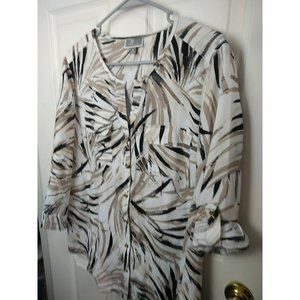 JM Collection Women's V Neck Flap Pocket 3/4 Tab Sleeve Button Shirt. Size M