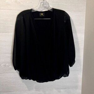JM Collection Women's V-neckline Mesh Trim Long Sleeves Pullover Blouse