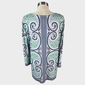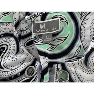 This JM Collection tunic top is in excellent pre-owned condition, showing no stains, tears, or flaws! The stylish black and green swirl print is sure to turn heads.