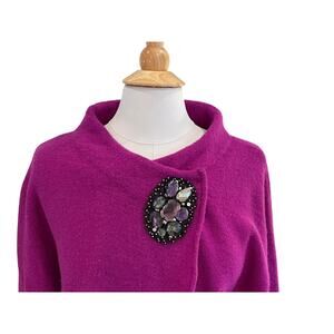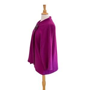 JM Collection Wool Magenta / Purple Open Cardigan / Duster, Jeweled Closure, M