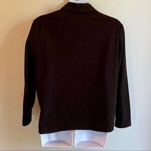 JM Collection Long Sleeve Button Up Top. Black with pretty purple and white flowers. 97% cotton 3% spandex. Extra Large with approximate measurements laying flat: 27” length, pit to pit 23 1/2”.