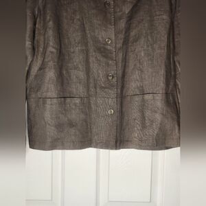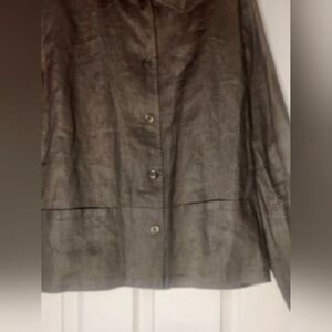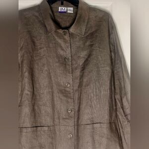 JM Collection XL Longsleeves Peanut Brown 100% LINEN Pockets Buttons Up Women's Jacket
