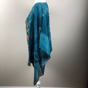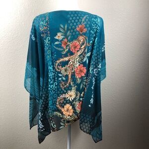 JM Collection XS NWT Turquoise Floral Lagenlook Relaxed Fit Flowy BOHO Blouse
