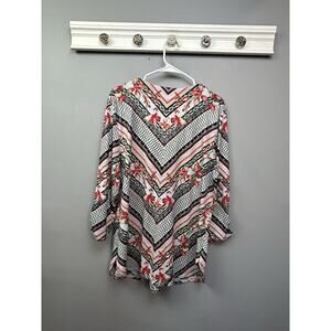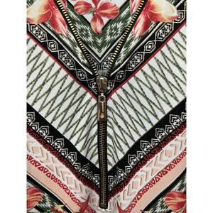 JM Collection Zip-Neck Womens Tunic XXL Mitered Vines Floral Colorful Garden
