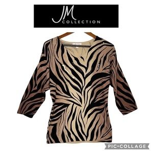 JM Collection animal print V neck light pullover 3/4 sleeve sweater