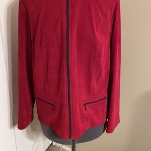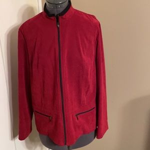 Red blazer trimmed in black blazer. Size 14P. 97% Polyester/3% Spandex. Zip front with 2 zip pockets. Excellent condition