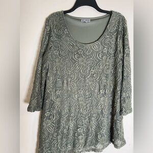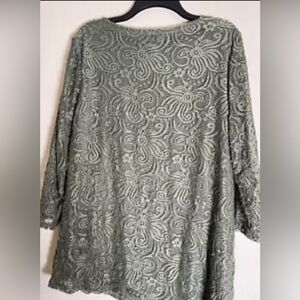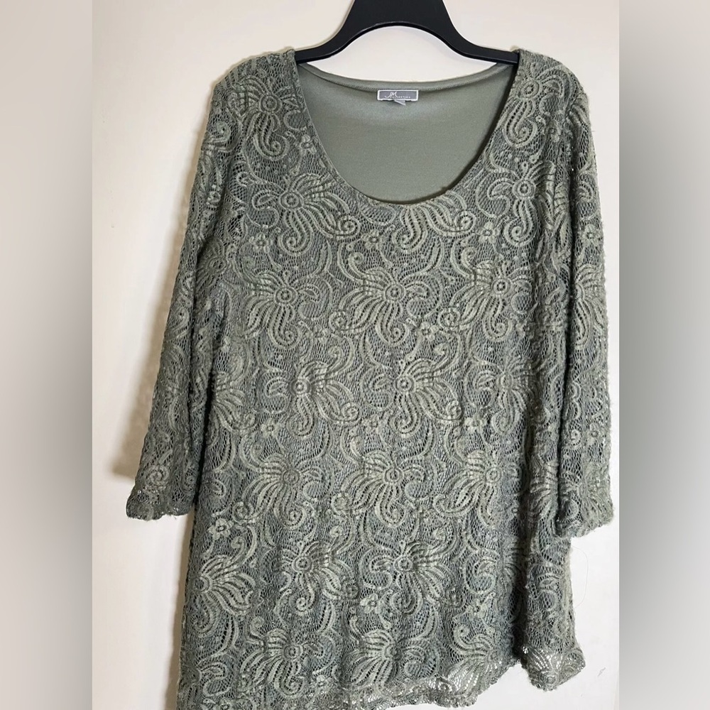 blouse from JM Collection is in preowned condition crochet outer lining olive green