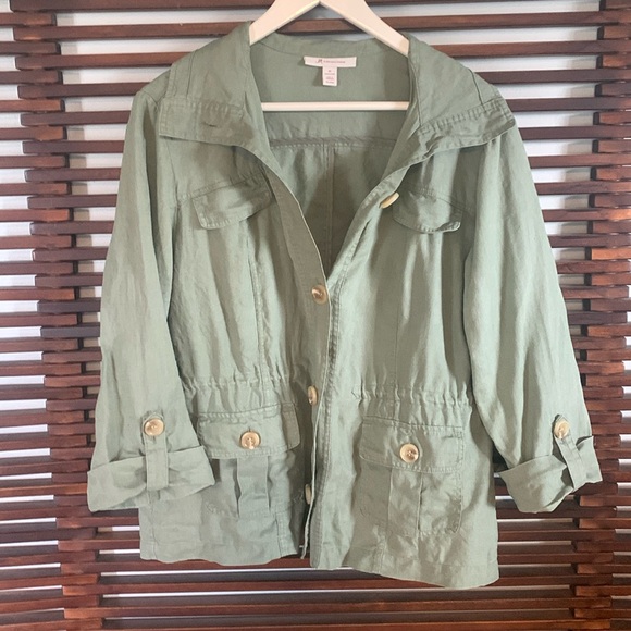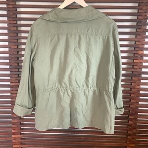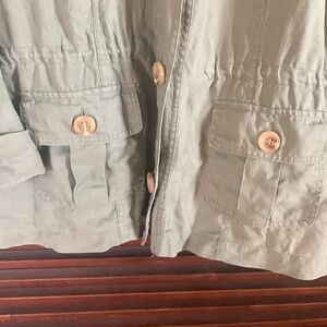 Darling linen jacket with button detail all over. 3/4 button tab sleeves. Drawstring waist to cinch if wanted. Great condition but has a tiny spot on shoulder that collar covers. 💥Offers welcome💥