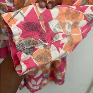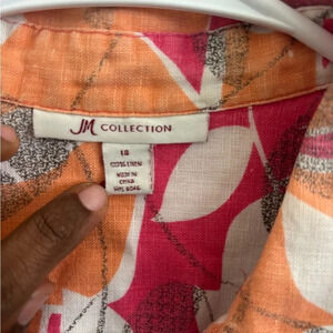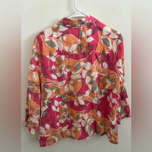 JM Collection shirt womens 14 button down linen collared floral print Bloomcore
