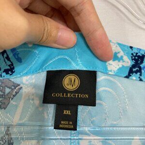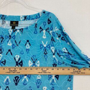 JM Collection size XXL Blue Abstract Pattern Textured Knit Stretch Top Office