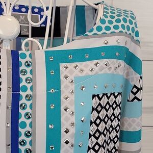 JM Collection tunic top silver stud embellishments- blue Women's Size M