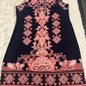 JM Collection womens L geo pattern dress v neck stretch timeless