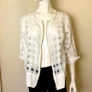 JM Collection Jacket P/L White Summer Jacket with 3/4 Sleeves Zip Closu…
