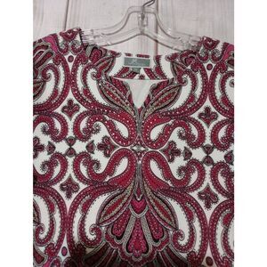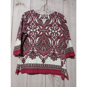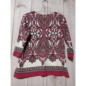 JM Collection Shirt Ladies Large Petite Pink Paisley Studded 3/4 Sleeve
