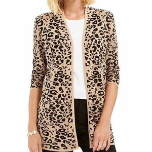 JM Collection Women's Cardigan Long Sleeve Animal Print Open Front Petite/Petite