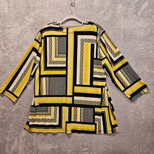 JM Collections Tunic Blouse Womens XL Yellow Black White Geometric Design