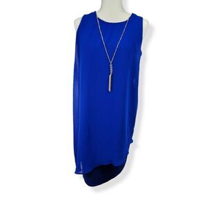 JM Collections Blue Shift Chiffon Dress Petite Medium