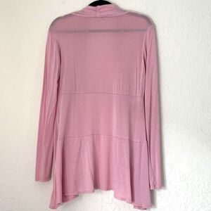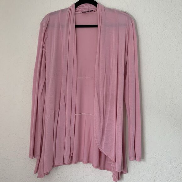 JM Fleurette Open Front Cardigan Women L Pink Long Sleeve Drape Top Preppy Work