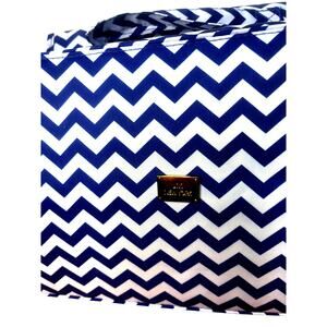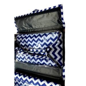 Blue and white chevron cosmetic case set with velcro bag inserts.