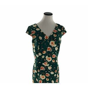 JM Studio By John Meyer Dress Women's 10 Emerald Floral Cap Sleeve Stretch Midi