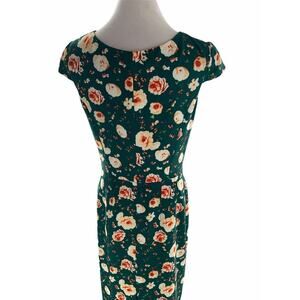 JM Studio By John Meyer Dress Women's Size 10 Emerald Floral Cap Sleeve Stretch Midi Lined