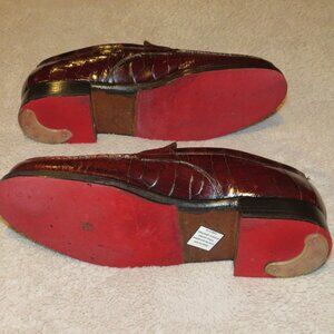 J.M. Weston 180 Burgundy Crocodile Split Toe Loafer 8.5 C