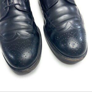 J&M Wingtip Oxford Sheepskin Signature Series in Black. Size 10M. Super soft leather. Brogue detailing. Minor scratches associated with light use. Please see photos for heel wear.