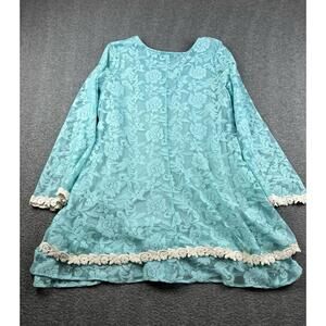 J&M Women's Light Blue Lace Long Sleeve Blouse Size Large