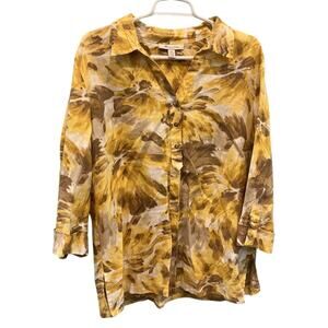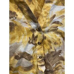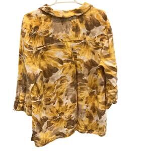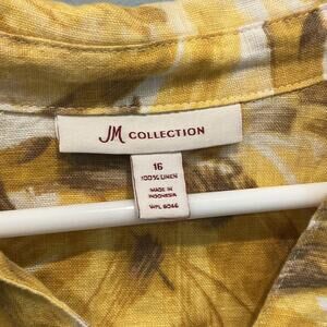 JM Womens Linen Tunic Top Size XL Extra Large 16 Yellow Floral Fall Boho Casual