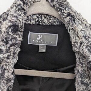 JM collections women’s faux fur Grey and white grayish color coat size medium in great Britain condition