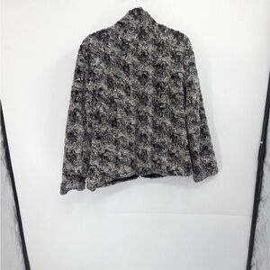 JM collections, women’s faux, fur, gray and white coat size medium